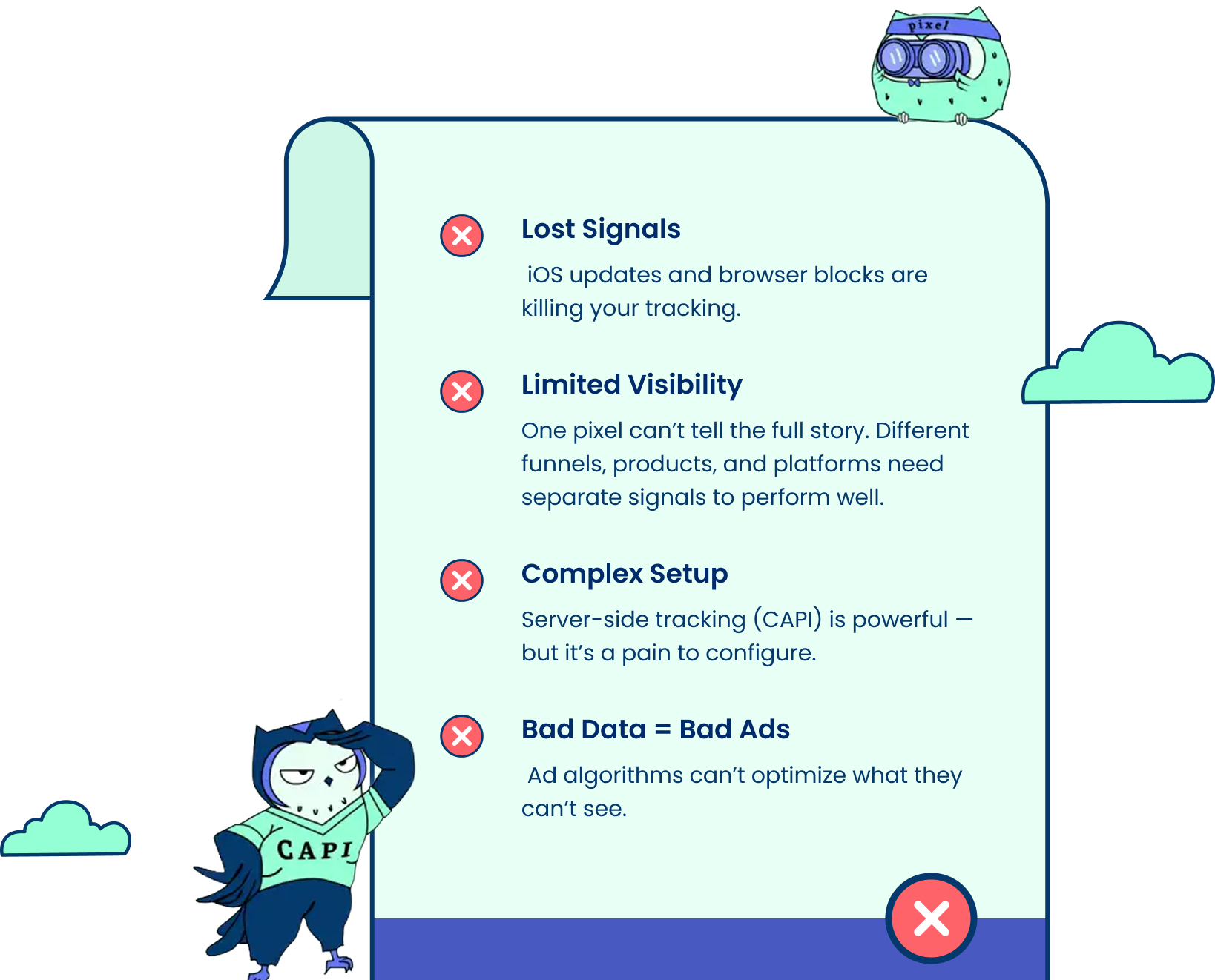 Two Owls pixels are unlike other. You got super easy setup AND great data. All events are enriched with valuable customer info, so you can target & scale insanely accurate.