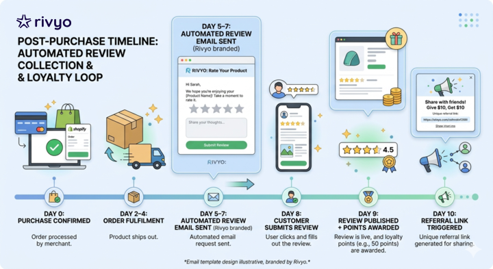This is exactly why a Shopify review app like Rivyo Product Reviews focuses on collecting verified, photo-backed, text-rich reviews rather than just counting stars. A photo review from a real customer using the actual product does more work per review than twenty anonymous one-liners. Rivyo's automated post-purchase email flow collects exactly these — reaching buyers 5–7 days after delivery when the experience is fresh and the language they use to describe the product is specific, helpful, and search-visible.