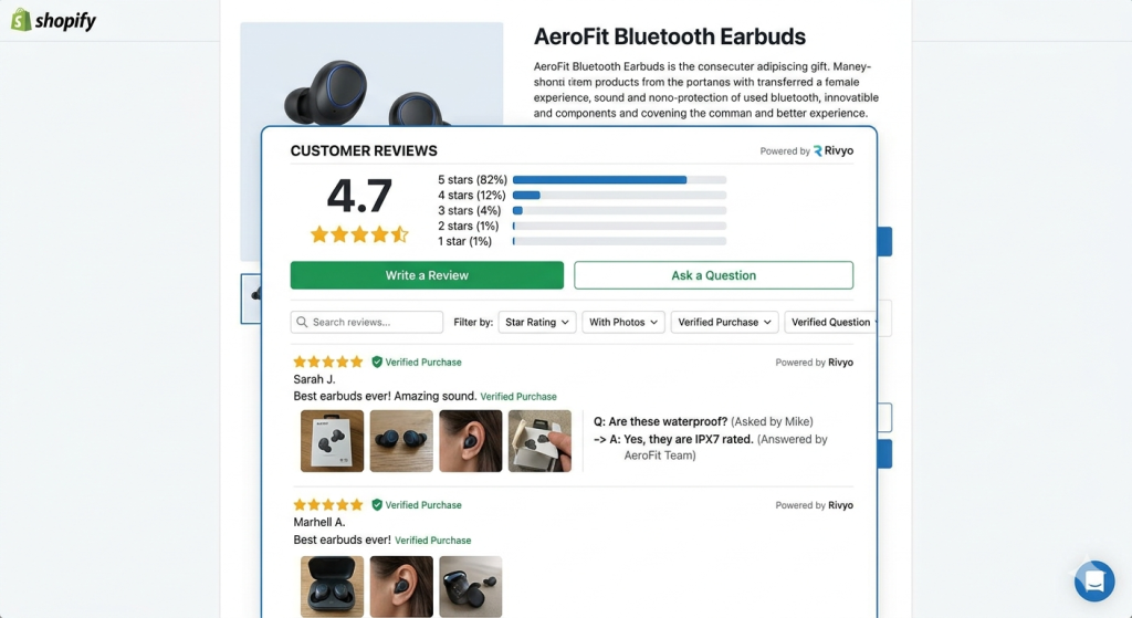 Display is the second half of the equation — and the half most merchants get wrong. Reviews buried below the fold, hidden in a tab, or shown without photos do minimal conversion work. Reviews displayed near the product price, near the add-to-cart button, with a clear star breakdown, photo thumbnails, and verified purchase badges — those converted. Review widgets with search functionality produce a conversion lift compared to static review blocks.